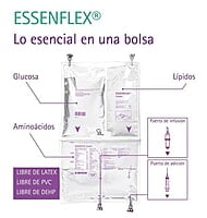Nutrición parenteral lista para usarse que contiene lípidos, aminoácidos con electrolitos y glucosa en una moderna bolsa de tres cámaras, para administración intravenosa por Cateter Venoso Central